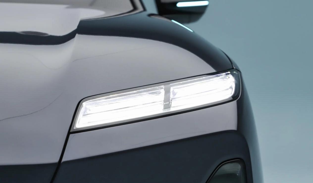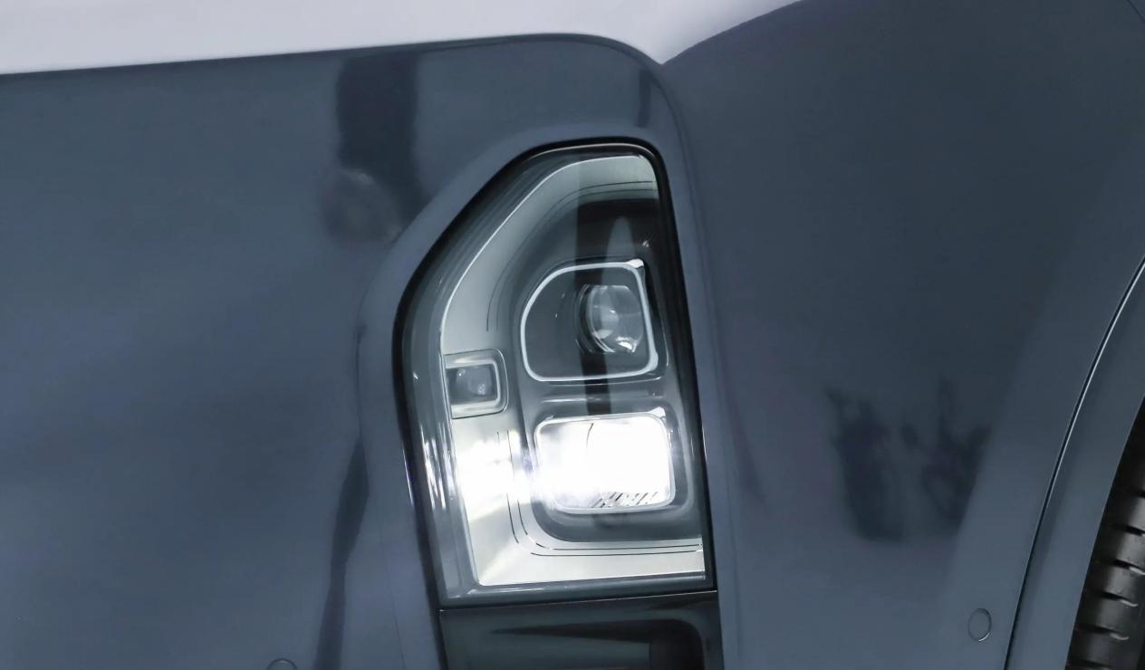 车头部分相比前代显得更加高大简约,采用封闭式格栅和分体式大灯组,上半部分是LED日行灯,下半部分是像素矩阵式LED大灯组,并加入更多迎宾效果,支持3套迎宾灯效、3套迎宾投影以及2个投影灯光秀,智能高清投影大灯HDPL照射范围拓宽至6车道,夜间行车更安全,并且支持FOTA持续进化照明能力。