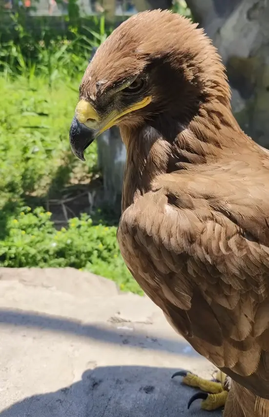 它长得酷似老鹰高忆管理,身上的羽毛大多是黄棕色的,脖子上的毛很蓬松,翅膀边缘和尾巴则是黑色的。